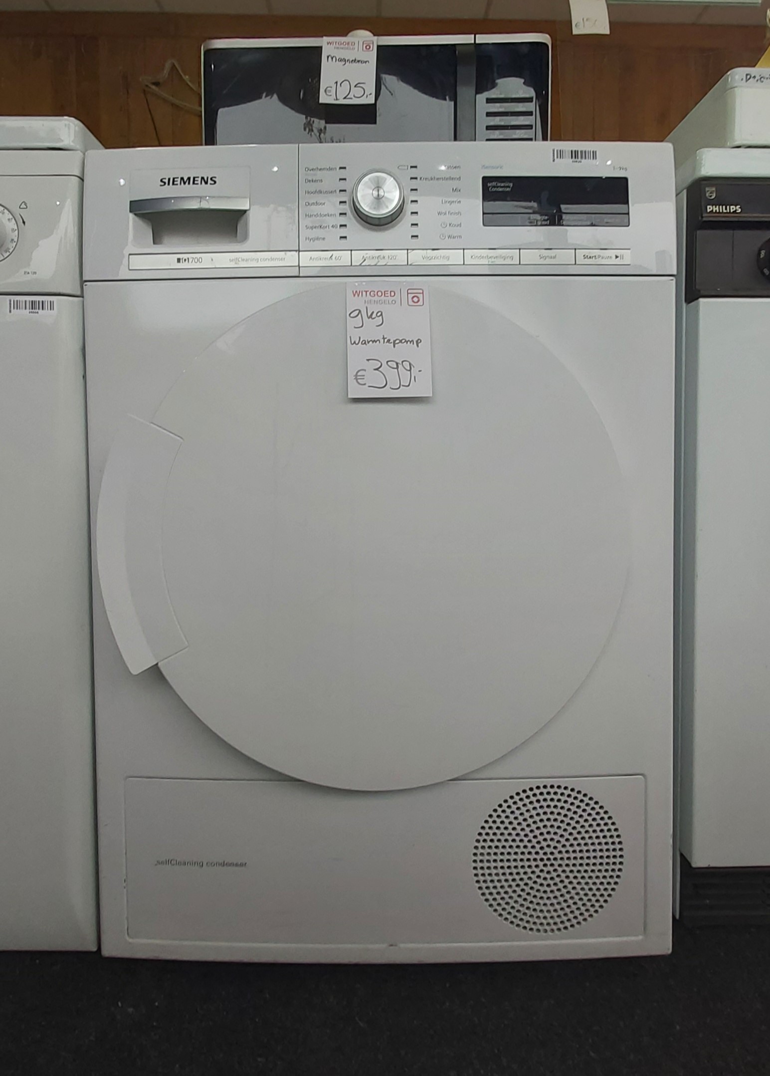 De Siemens WT44W562NL is een warmtepompdroger uitgevoerd met een trommelinhoud van 9 kg en een zeer zuinig energieklasse A++ label. Deze warmtepompdroger is verder voorzien van praktische trommelverlichting, weergave van de resterende looptijd en uitgestelde starttijd.