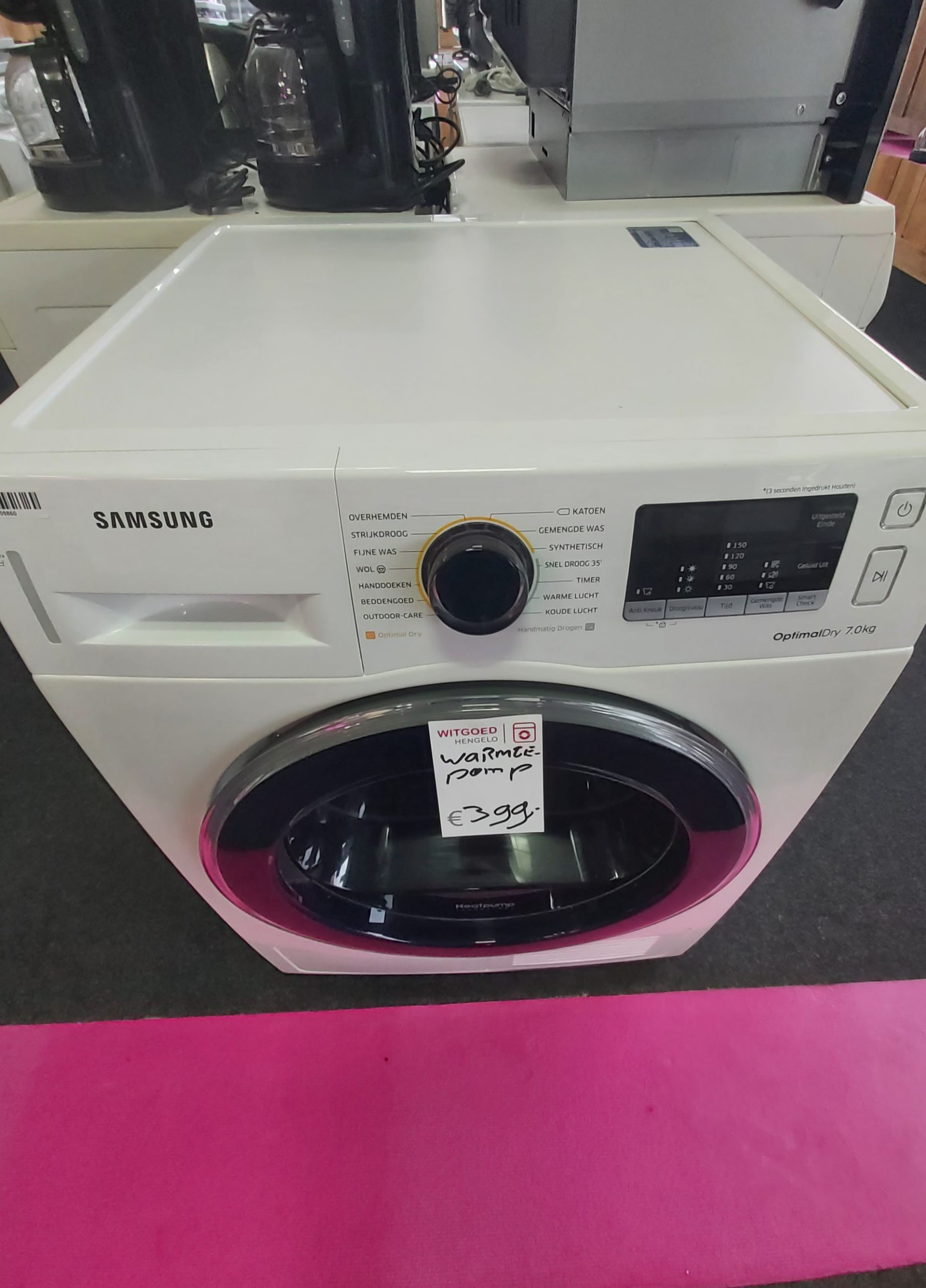 De Samsung DV70M5020QW is een warmtepompdroger met 14 programma’s om jouw kleding droog te krijgen. Zo droog je met een gerust hart je wollen trui, maar ook synthetische of delicate kleding. En wil je dat je kleren lekker ruiken na afloop? Zet dan de verfris functie aan. Sensoren meten de vochtigheid en temperatuur en zorgen voor energiezuinig drogen. De droger heeft een vulgewicht van 7 kilogram en is het meest geschikt voor huishoudens van 1 tot 2 personen. Door het speciale patroon beschermt de trommel je wasgoed, waardoor dit minder slijt. Je hoeft niet bang te zijn dat je kroost het droogproces onderbreekt: de kinderbeveiliging geeft ze geen schijn van kans.